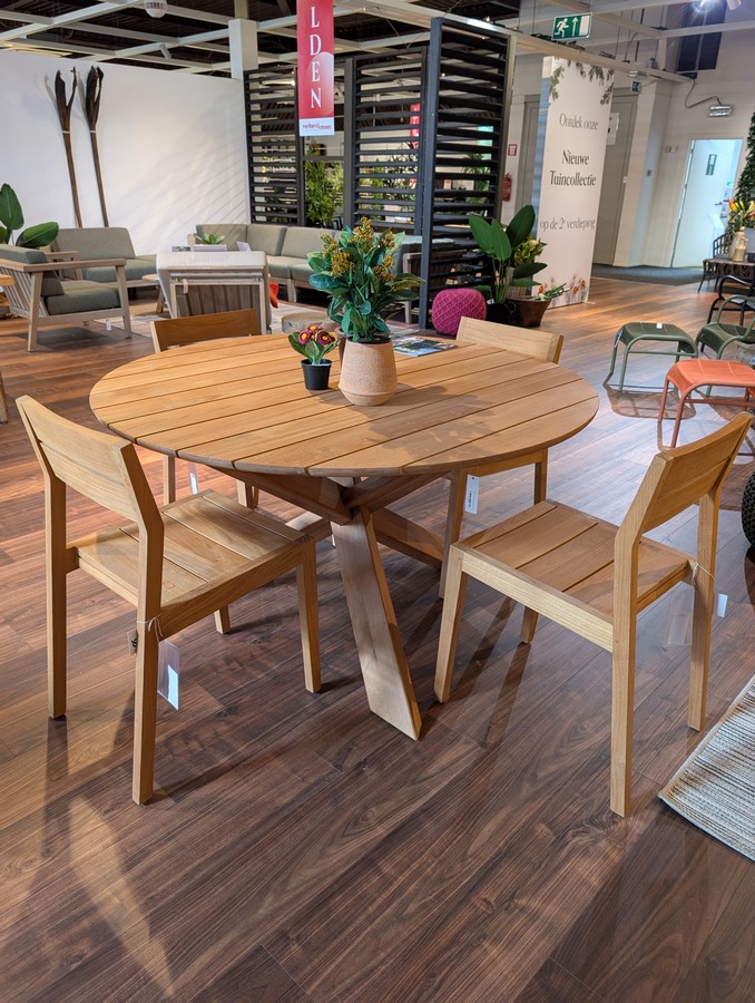 Ethnicraft outdoor Circle tafel + 4 EX outdoor stoelen